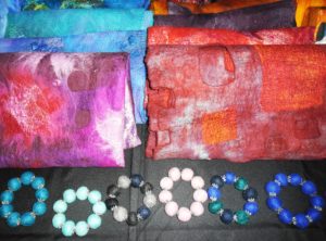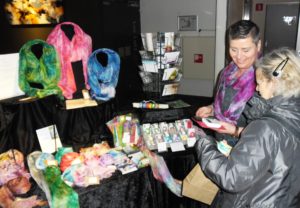 Op de Winter Art Fair was een variëteit aan kunst vertegenwoordigd: schilderijen, sieraden, shawls van zijden en vilt, beelden van betongas, keramiek, glas en nog véél meer, in de meest uiteenlopende kleuren. De vele bezoekers hebben genoten en namen een gevuld tasje weer mee naar huis.